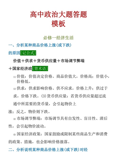 清北教师:整理高中政治大题万能答题模板(可打印),建议收藏