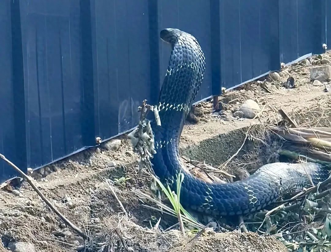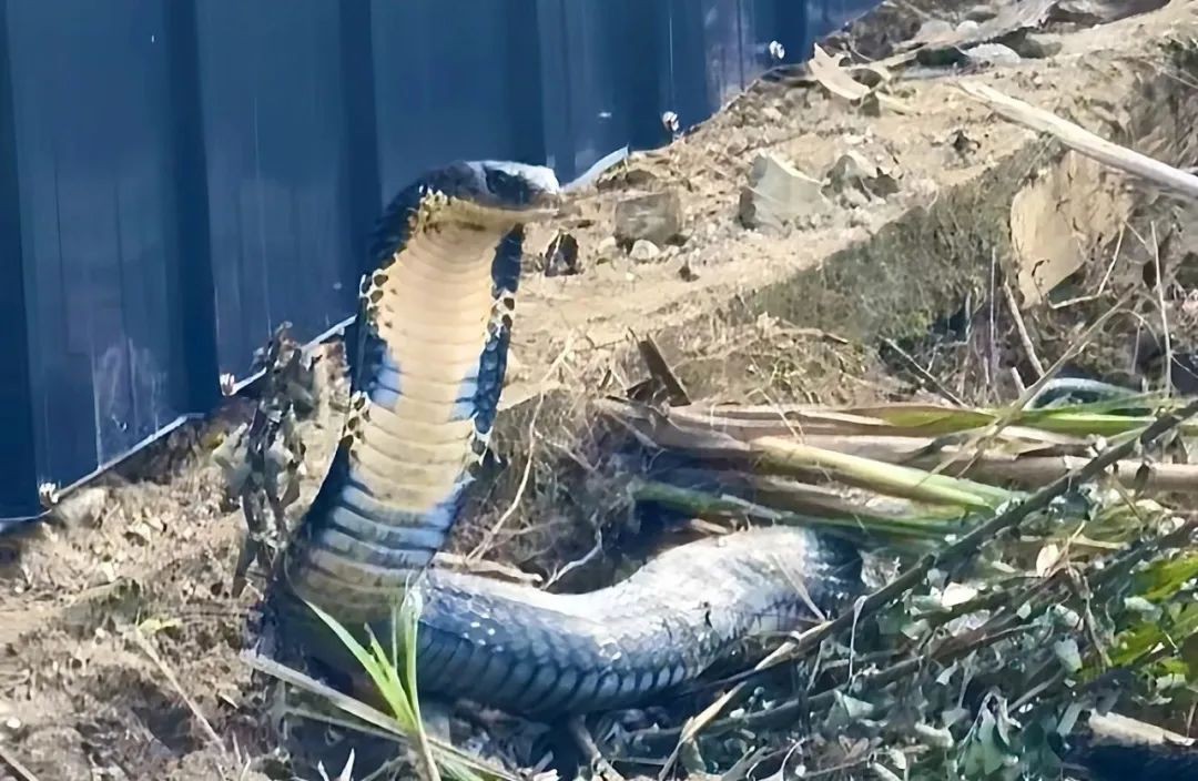 西藏林芝墨脱县——一条2.5米长、重8千克的成年眼镜王蛇。“脖子昂得老高,信子吐得欢快,还发出‘呼呼’的警告声。”附近的群众一看这体型、一听这声响,哪敢靠近,大家小心翼翼地后退,有的干脆掏出手机拍视频。