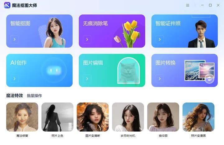 主打抠图功能的修图软件,采用先进的图像识别技术和人工智能算法,可以自动识别并分割目标区域并处理复杂和不规则的形状目标,从而快速、准确地对人像或物品等多种类型进行抠图操作。