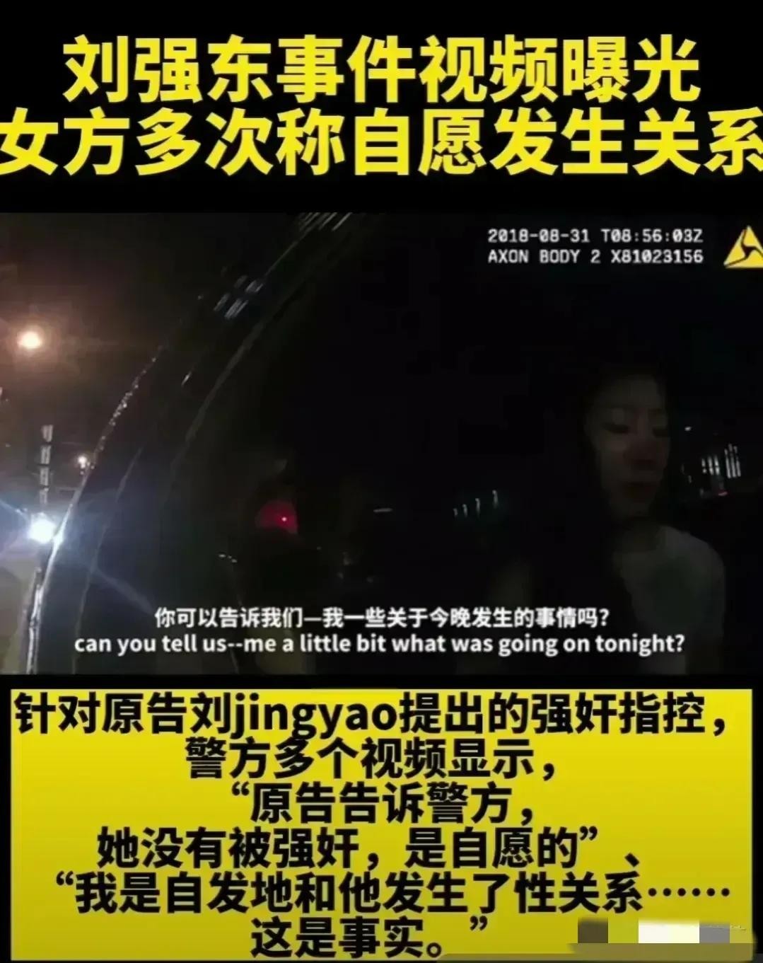 三、晚宴后,刘强东应邀,与女主角刘静尧一起乘车前往女主角公寓,洗澡上床发生不可描述之事,被女主角男同学陶某报警,刘强东31日凌晨3时24分被警察带走,陶同学躲墙角偷看警察带走刘砌墙东并作蹦跳和摩擦地面的异常举动。刘向东被警方抓走后,刘静尧还到电梯送行后面离开的警察,随后还与陶某坐在大厅商量,还低头捂脸状。