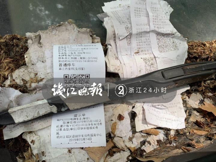 5月14日中午,记者再一次来到仁和路,和前一天一样,车子丝毫没有移动过的痕迹,稍微有点不同的是,挡风玻璃上多了一张计时小票,和那些被雨水打湿后干皱的小票们一起被压在雨刮器下。