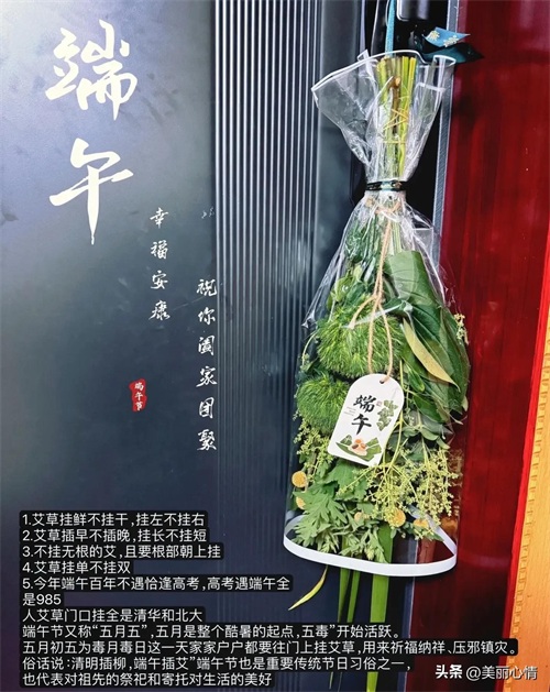 端午节门口挂艾草不仅是一种传统习俗,更是中华文化的重要组成部分。通过这样的习俗传承,我们向后人传递了中华民族丰厚的文化底蕴,弘扬了中华民族的优秀传统。