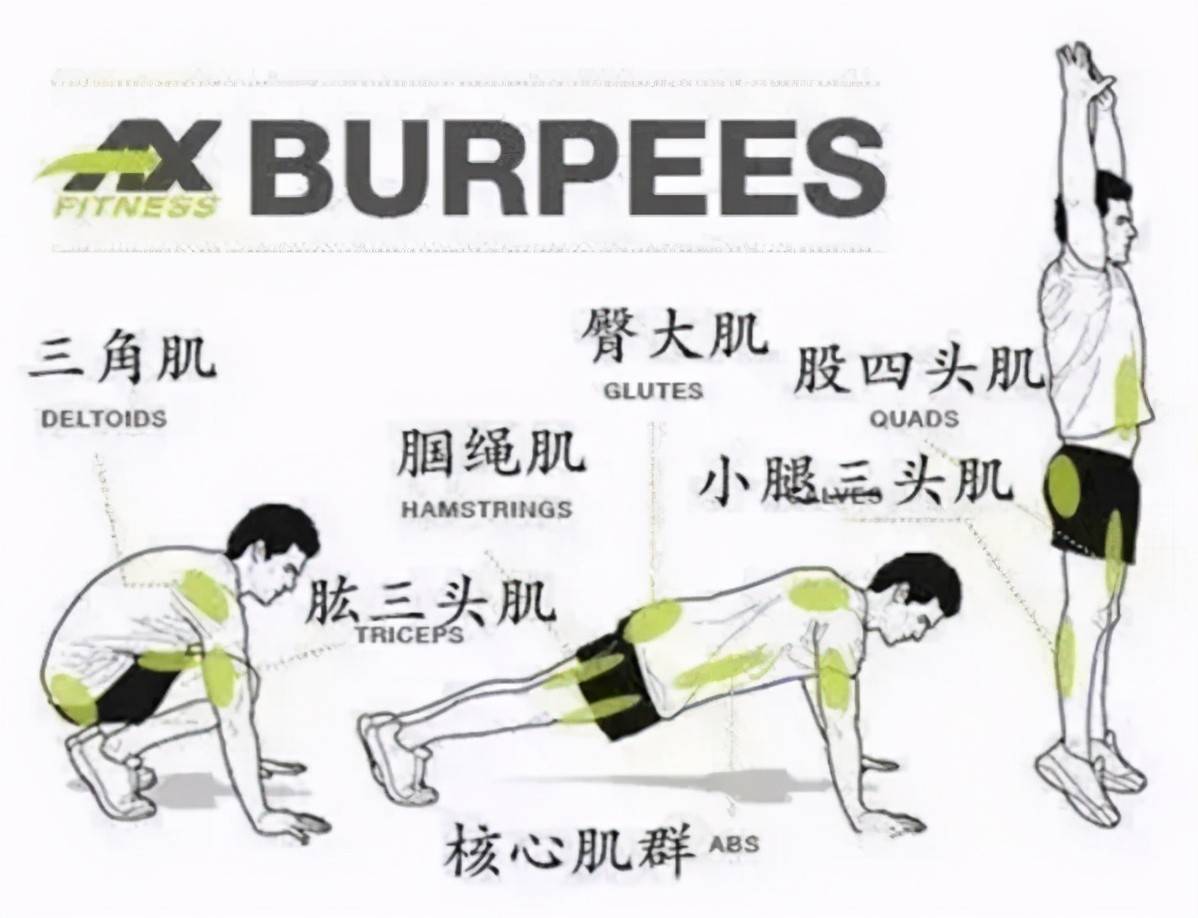其实原因很简单,因为这个动作集合了深蹲、俯卧撑、屈腿收腹三个动作,是一项典型的全身性运动。