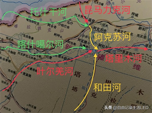 它有四大源流:和田河、叶尔羌河、喀什噶尔河、阿克苏河