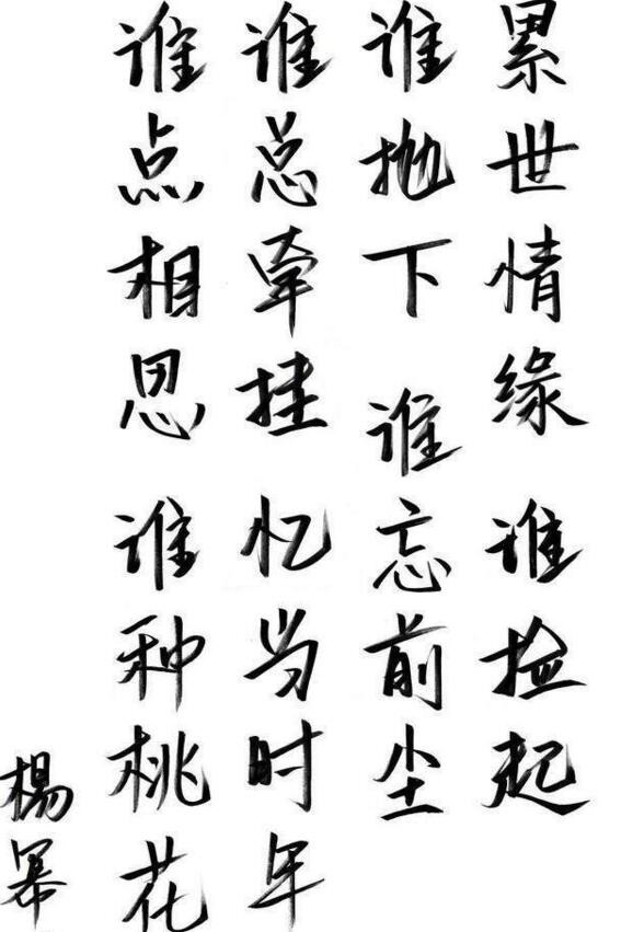 杨幂写了13个字,“忆当时年华,谁点相思,谁种桃花”,随着这些字投放在大屏幕上,现场所有的粉丝都沸腾了。“大幂幂你最棒”“原来大幂幂的字写得这么好!”的声音不绝于耳。下面我们就欣赏一下杨幂的书法作品。