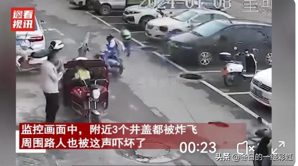 小孩往井盖里扔鞭炮极其危险!一瞬间人和井盖一起被崩飞!