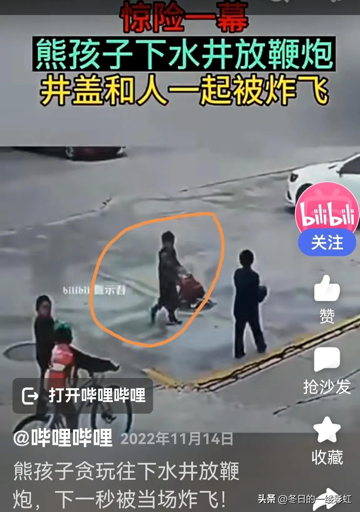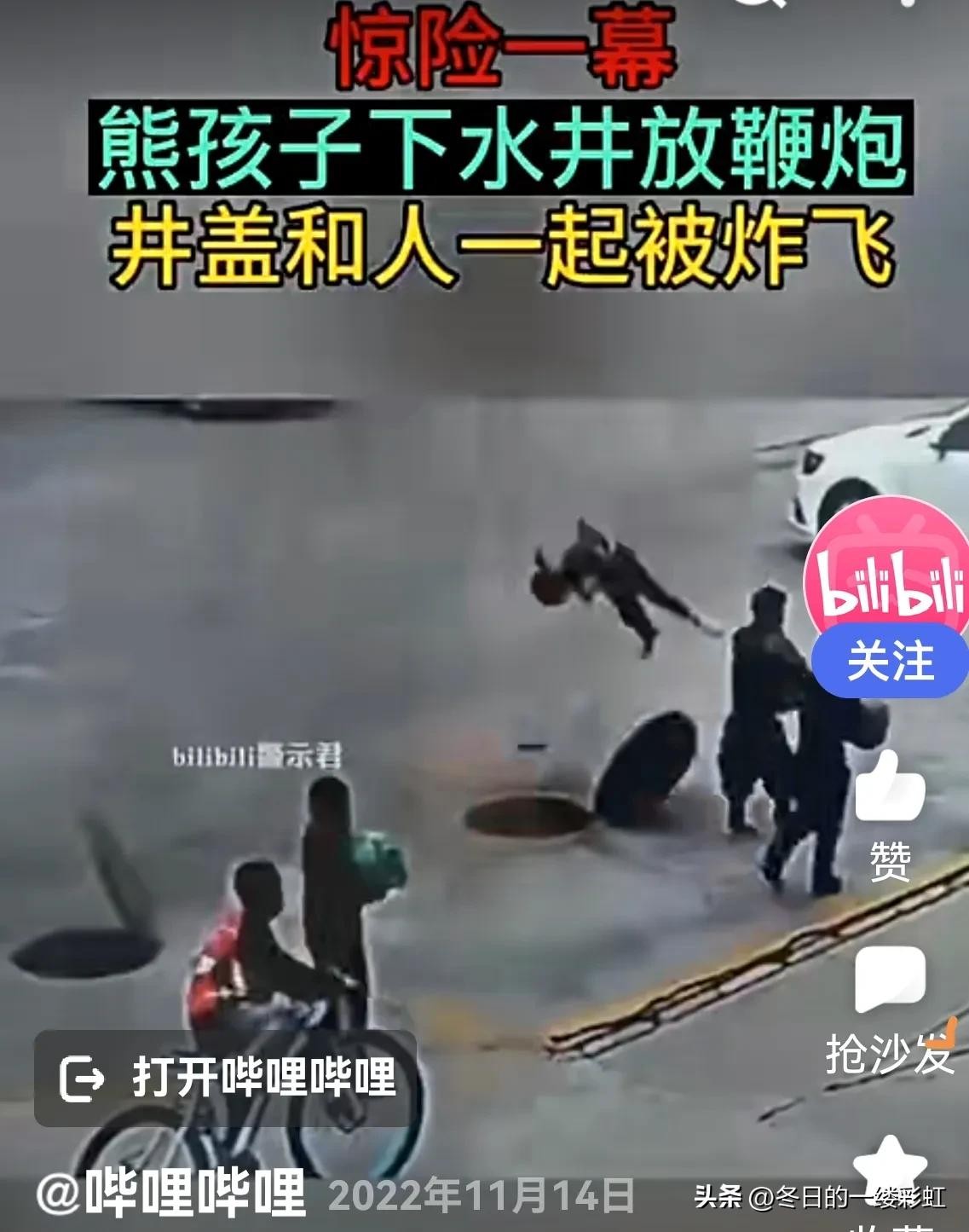 2022年11月14日,一群孩子在玩耍,其中红衣服小孩蹲下点燃了鞭炮,扔在窨井里,瞬间将孩子和井盖崩飞!