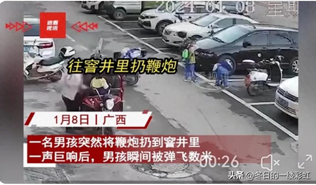 就在昨天,广西百色,两个孩子放学,一边走一边玩。其中一个孩子弯腰点燃鞭炮,扔进井盖里。结果,一瞬间就把小孩和井盖崩飞了!幸好,孩子没出大事!一瘸一拐回家了!估计是吓得够呛!