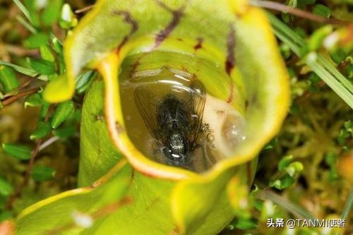 捕虫笼的盖子会分泌一种香味,专门吸引虫子钻进去,而瓶口比较光滑,只要虫子钻进瓶盖就会滑进去,而瓶底分泌有很多液体,虫子进去后就会被淹死,最后再慢慢分解虫子的营养物质,消化吸收。