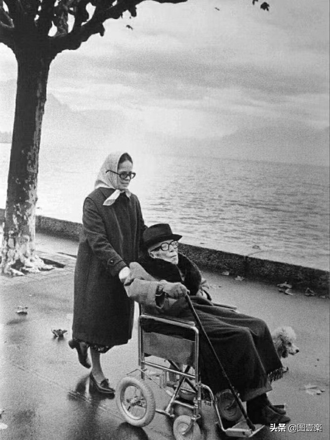 这可能是卓别林生前最后一张照片。照片拍摄于1977年,当时已经88岁的查理卓别林坐在轮椅上在户外,同年12月25日圣诞节的早上他于家中逝世。一代喜剧大师就此谢幕。