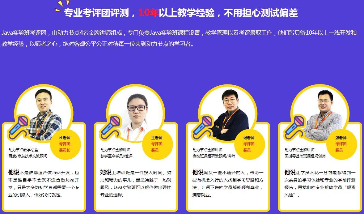 教学质量高不高是选择Java培训机构的核心判断标准。同时这也是决定“Java培训哪家好?”这个问题关键因素。教学质量则受到师资力量和课程质量的影响,因此,一家教学质量很高的Java培训机构,一定会有一支高素质的讲师队伍和完整且系统的课程内容。动力节点的老师都是经过严格筛选的,他们都有10年以上的大厂工作经历,开发实力很强,而且其Java课程均是独立研发的,强调以项目驱动教学,质量很高!