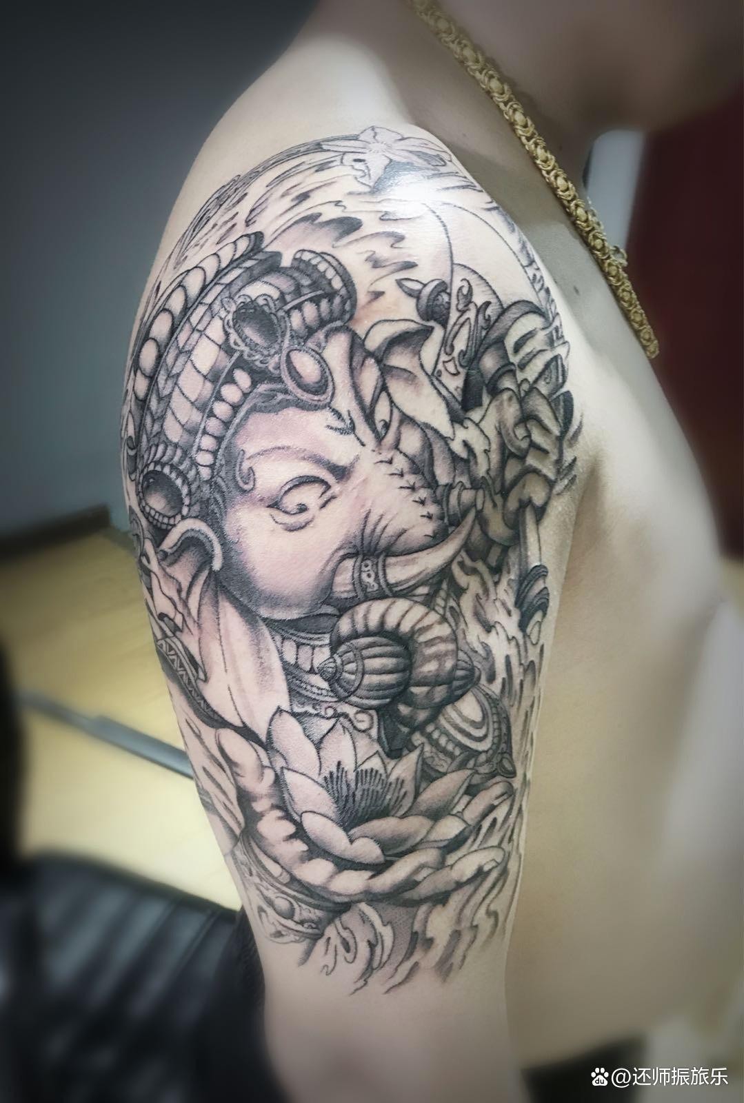 在印度教和佛教中,人们认为纹身是一种神圣的象征,可以保护和带来好运。因此,许多人会在身体上纹上象神纹身,以表达他们的信仰和敬意。 象神纹身的文化意义主要表现在以下几个方面: