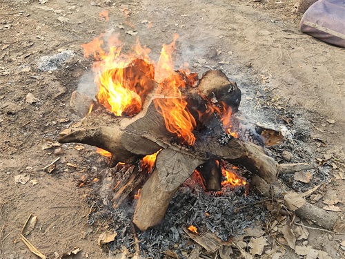 三五人围在火堆旁边,火堆是用干透的木头疙瘩引起,围着熊熊烈火或蹲或坐,任凭火的温度温暖了前身,背后其实还是凉凉的,正所谓一句老话所说“漫地烤火一面热”。但是,依然会有很多人围火而烤,其实不为别的,只为烤火的那个氛围。