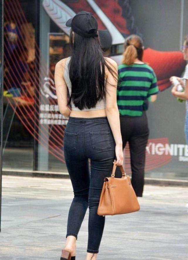 街拍:美女搭配虽然简单,但是难掩盖她的苗条身材!突出极品美臀