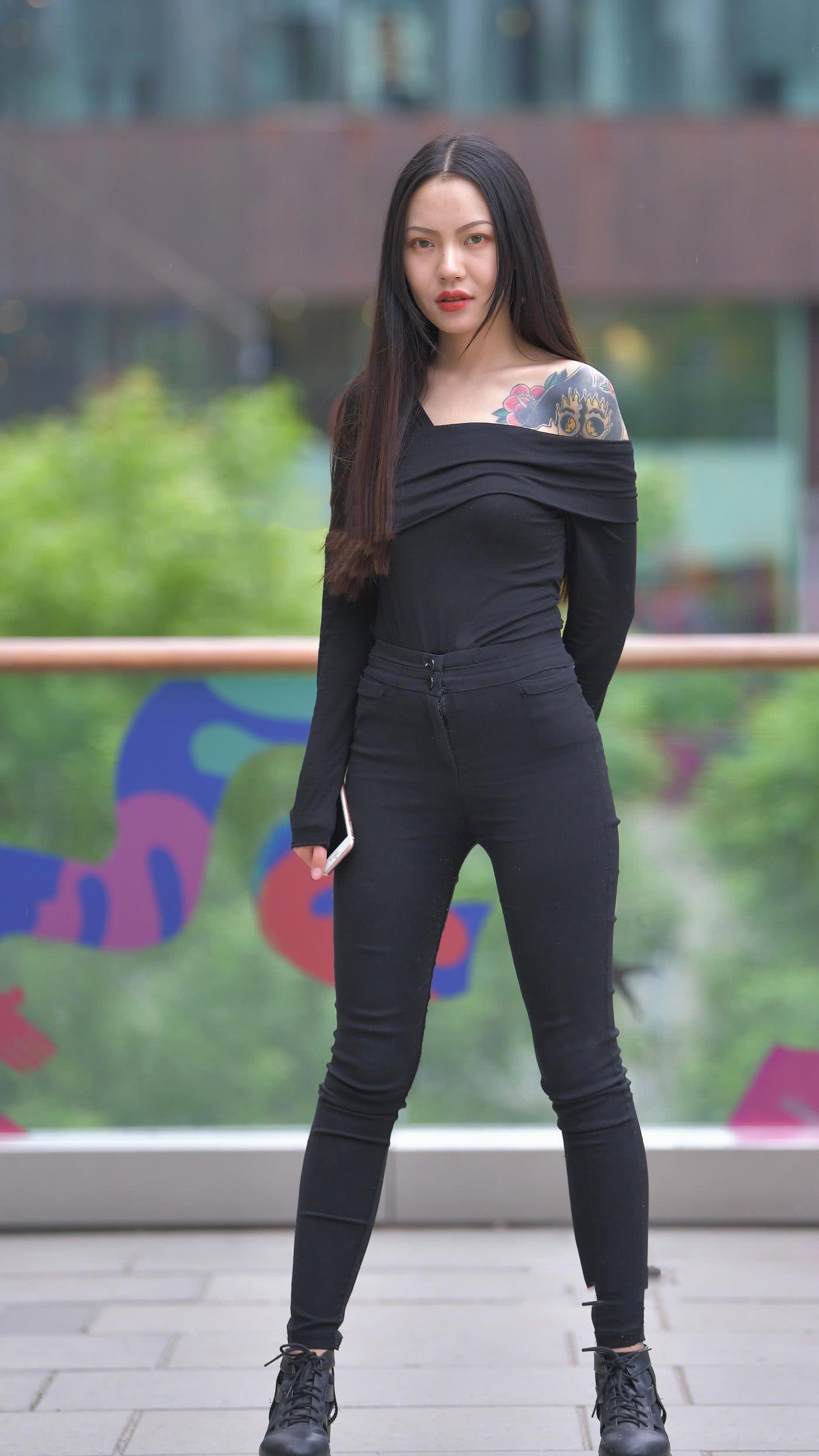 个性美女穿着黑色紧身裤把好身材展现的淋漓尽致!