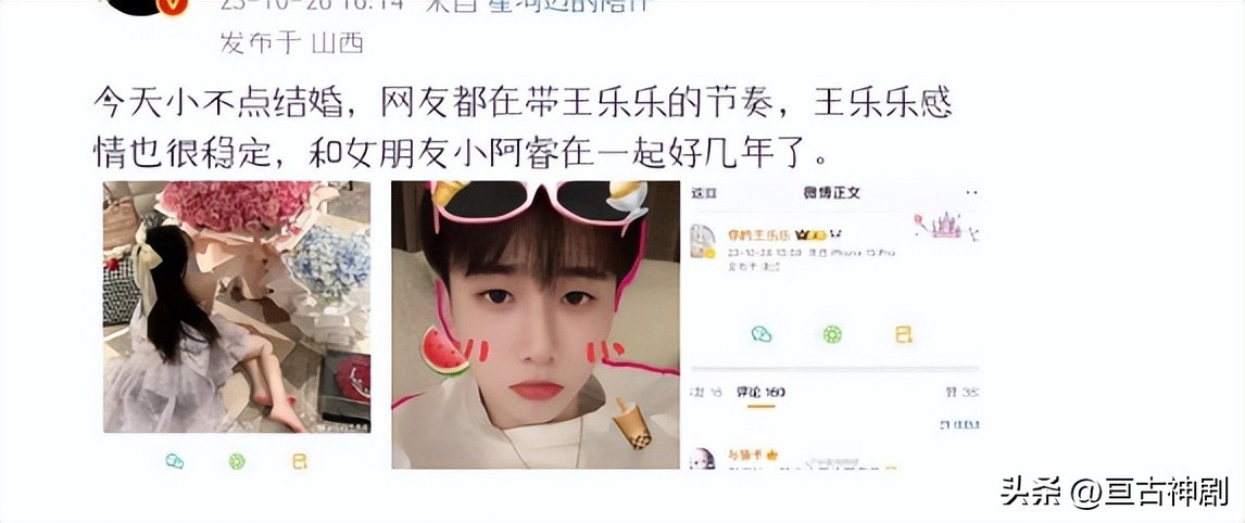 “今天小不点结婚,网友都在带王乐乐的节奏,王乐乐感情也很稳定,和女朋友小阿睿在一起好几年了。 ”