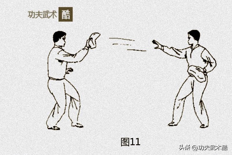 制作一帆布袋,内装河沙或铁珠、铁砂2-3千克。甲乙双方相距2-3米站立,两人相互抛接袋子。一手抓起上抛,另一手成鹰爪抓接,然后翻腕再向对方抛出。如此循环练习爪力及臂力。每组10-30次(图11)。