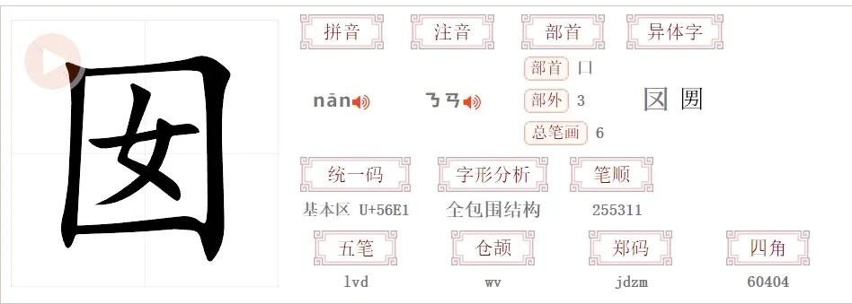 部首解析:"囡"从女得意,"囝"有立而成形