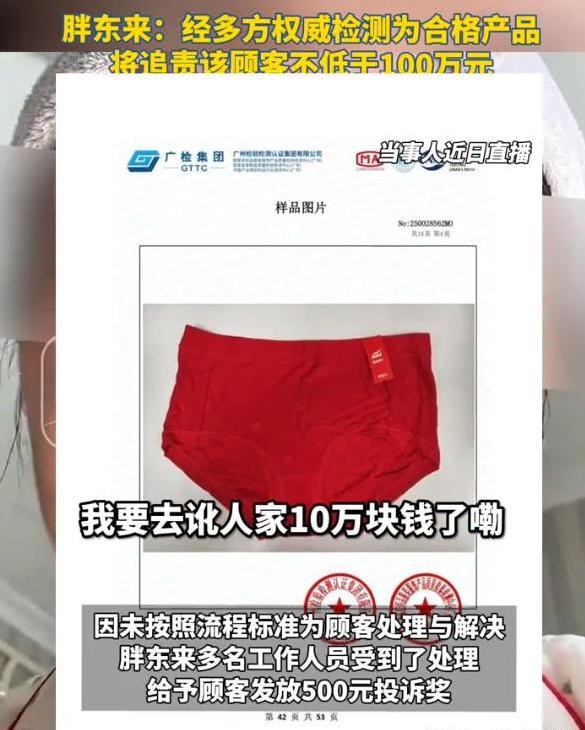 就在昨天胖东来再次发布公告,针对此事件出具了一份53页的检测报告书,报告中显示该内裤为合格产品,可随即女网红便删除了她发布的维权视频,这中间又有着怎样的隐情呢?