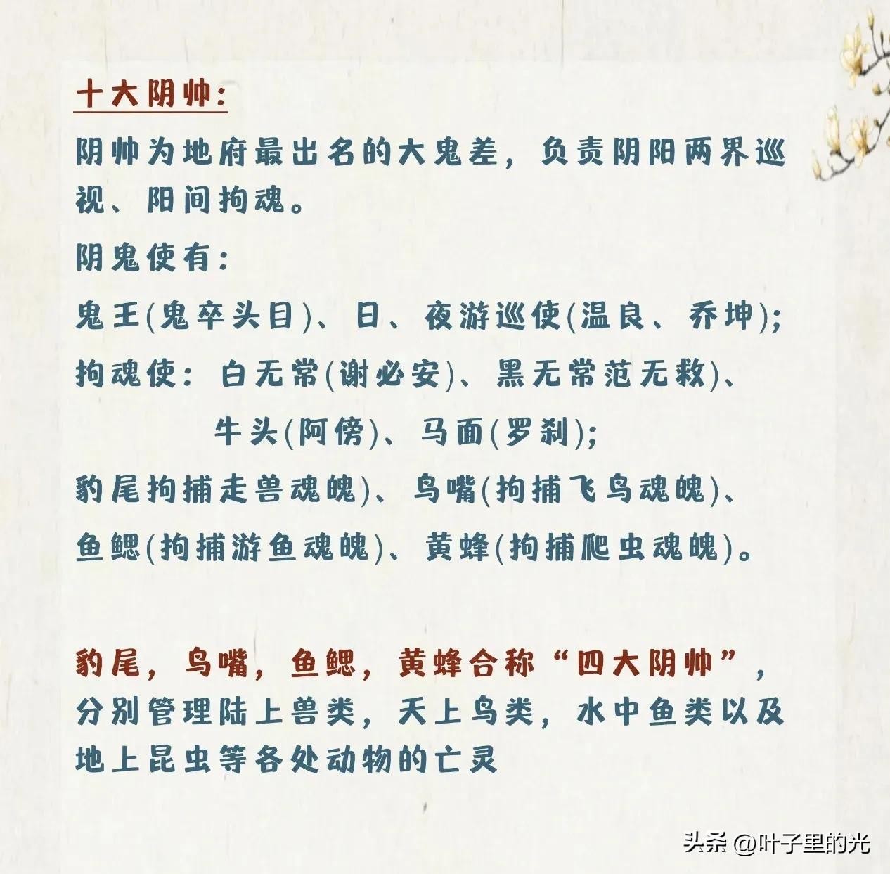 5、十大阴帅:我们熟知的牛头、马面、黑白无常都属于十大阴帅。
