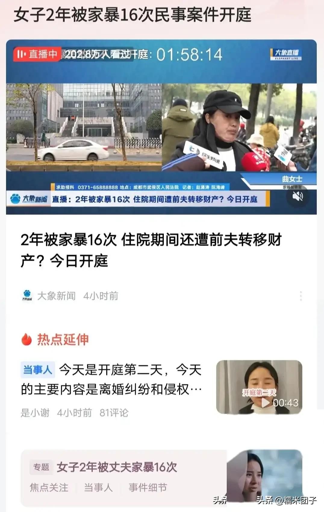 近日,一起家暴案件备受社会关注,受害者谢女士在两年的婚姻生活中,竟然遭受了多达16次的家暴,身心受到了严重的摧残,甚至需要终生依赖粪袋。这样的案件并非个例,近年来,家暴问题频频被曝光,成为社会关注的热点话题之一。而在这起案件中,谢女士的勇敢面对和坚持维权的态度,给社会带来了深刻的反思,也引发了公众对家暴法律保护的热议和讨论。