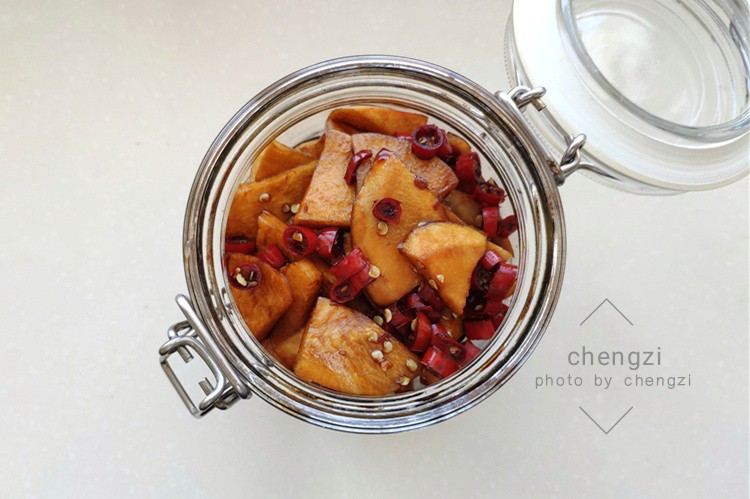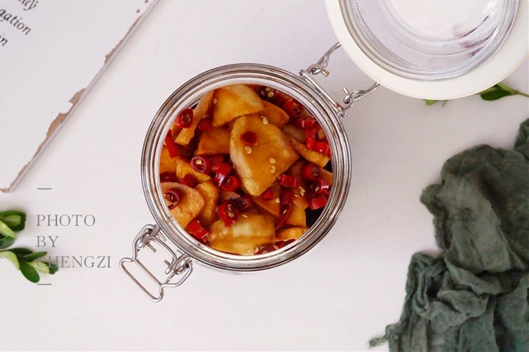 在众多小咸菜中,我家尤其喜欢腌萝卜,婆婆这个用了20年的老方法,萝卜切一切先加点盐腌出水了,再加经过煮制的调味料搅拌均匀,腌制一夜就可以吃了,酸辣爽口特别过瘾,比吃肉都香,而且这样腌制的萝卜,不会发霉,储存半年也不坏。