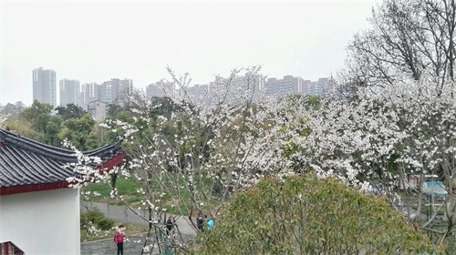 据了解,早樱先花后叶,多呈白色,盛开时花色如雪;晚樱花叶同放,姹紫嫣红;公园樱花坡的垂枝樱花也格外美丽,花开如瀑,气势磅礴。早春时节,堤角公园除了樱花,还有紫玉兰、垂丝海棠、贴梗海棠、美人梅、连翘、迎春、茶花、杏、李等也缤纷怒放,真是满园春色关不住。