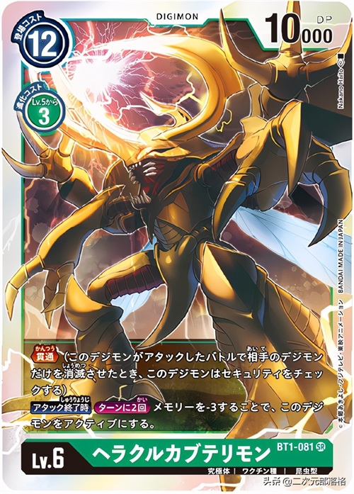 从外观上就可以看出力神比多兽不凡,配色直接用上了金黄色,并且还加强了飞行能力,据说能够用超音速在数码世界驰骋,少有数码兽能够在它面前逃脱;并且还有着巨大的角和钳,要是被顶上一下的话,只怕会重伤。