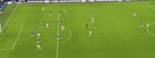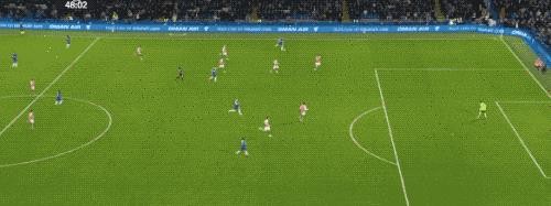 下半场开始仅仅3分钟,穆德里克的神仙球帮助切尔西扩大领先优势。他看了一眼后点的斯特林,一脚似传似射,皮球过了拉亚的头顶进入球门。但随后,
