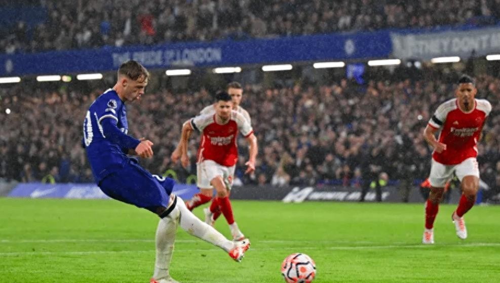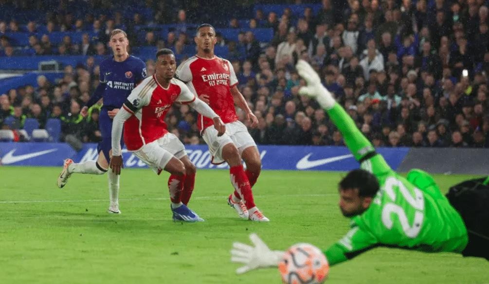 裁判叫停比赛,VAR介入,慢镜回放显示穆德里克的头球击中了萨利巴的手上,切尔西获得点球。帕尔默主罚点球,成功骗过了拉亚,攻破了阿森纳的球门,