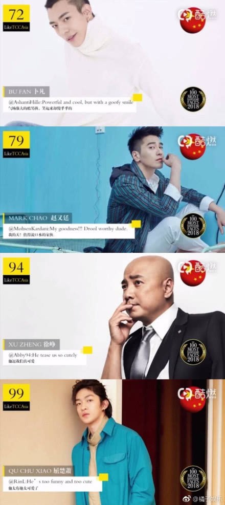 身为国内顶尖的流量明星,蔡徐坤自然也上榜了,排名第二十二,或许网友看到这个名字,会很惊讶,但是也能接受,冯绍峰排名六十一,范丞丞排名第六十二,吴磊也上榜排在六十七位。