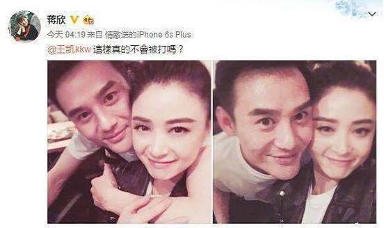 蒋欣今天发了一条微博之后秒删,微博中和王凯亲密合照,疑似公开恋情。