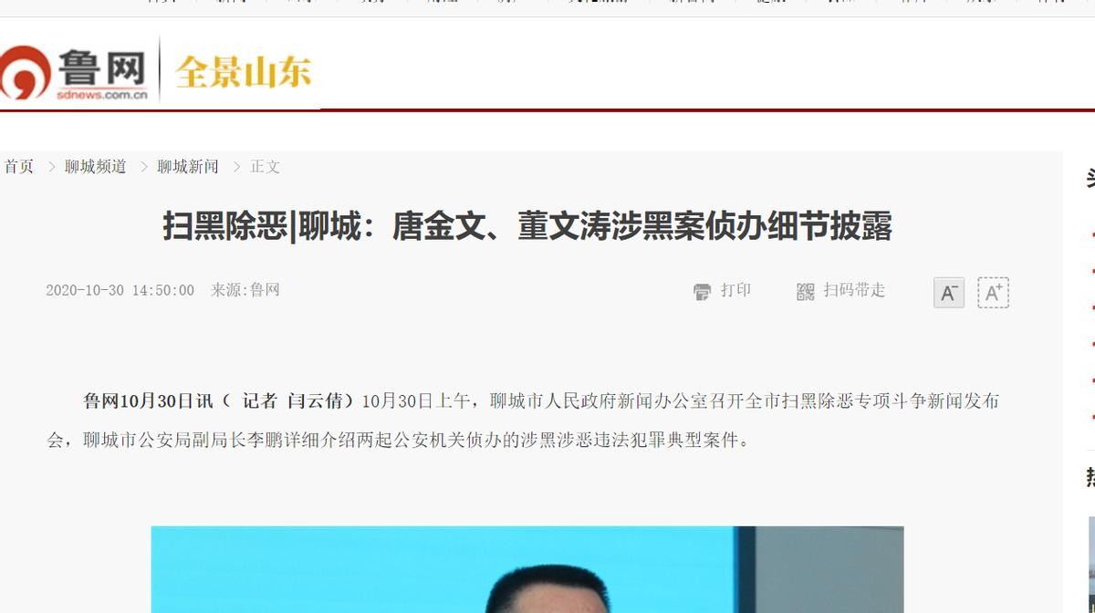 鲁网《扫黑除恶|聊城:唐金文、董文涛涉黑案侦办细节披露》