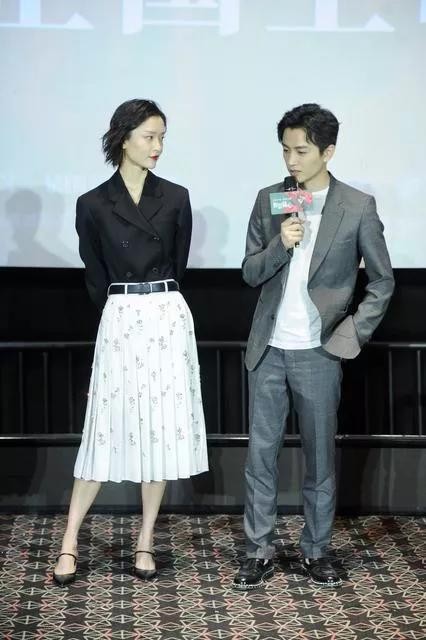 秦岚和陈晓出席电影【睡在我上铺的兄弟】活动与导演合照。