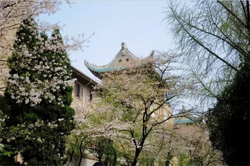 武汉大学法学大楼、经管大楼、外语大楼等标志性建筑群气势雄伟,新老建筑交相辉映,相得益彰。除了武汉大学校园能看到漂亮的樱花外,东湖的磨山上也有很多樱花,不过武汉大学的古建筑和历史背景使得这些樱花更有味道。
