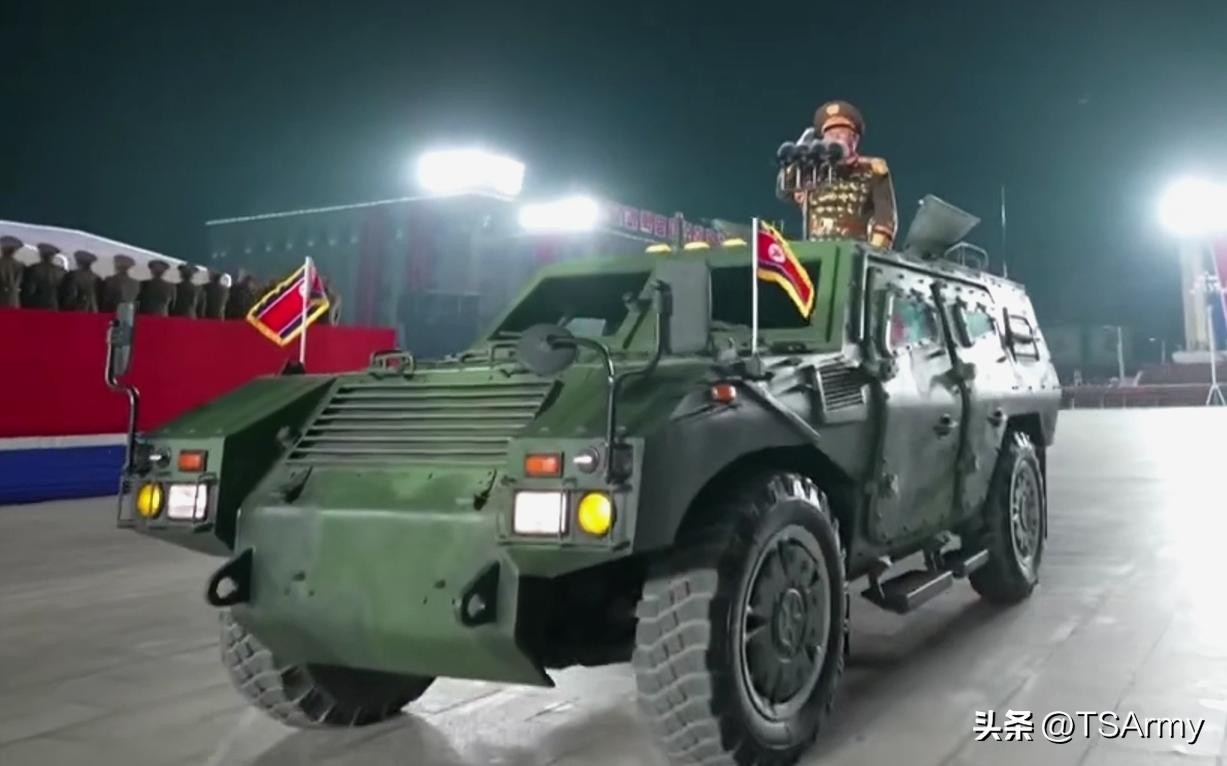 朝鲜在近些年夜间举行的阅兵式中,又开始采用一种现代化的4X4轮式装甲车,外形酷似日本的小松LAV轻型装甲车,不过该车的具体参数和名称未知。