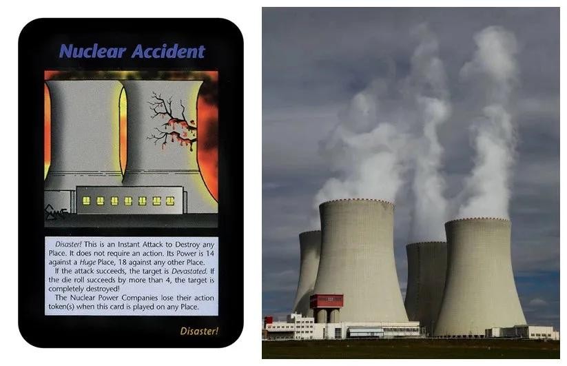 当年日本311大地震之后的第二天,紧接着就发生了福岛核电站事故,。而在这张卡牌里,最令人想不通的就是它的卡图,卡图里的右边建筑上的裂痕像不像樱花树枝?也许不止像樱花树枝、也有点像梅花树,但是关键在于裂痕上泛出的淡淡的红色,这不正好是日本最常见的粉红色樱花的颜色呀!
