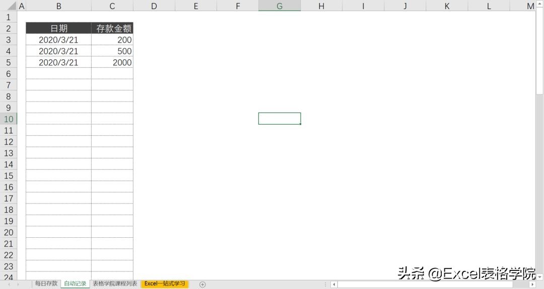 原表格中存了多少钱,没有记录和统计功能。经过优化后,每当有存款操作时,“每日存款”工作表中就会自动记录你今天存款的金额,以及累计存款的金额。