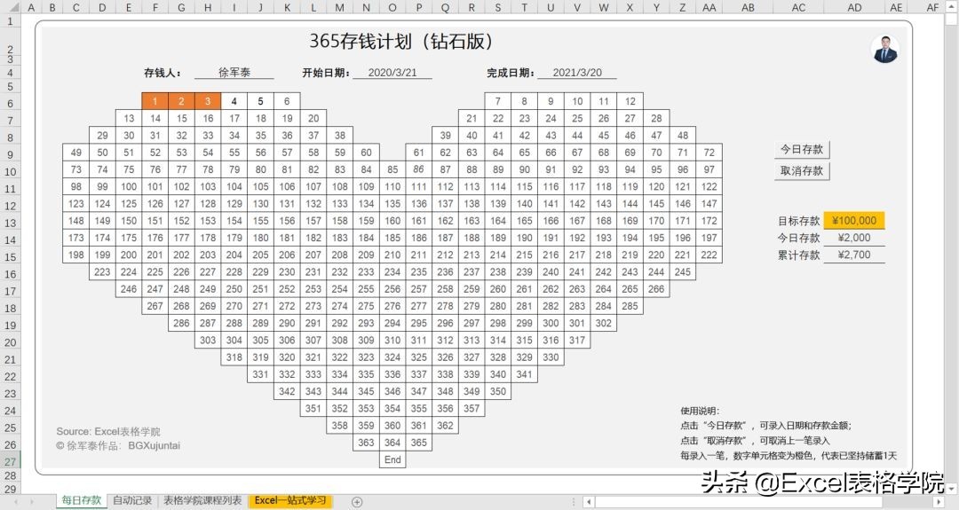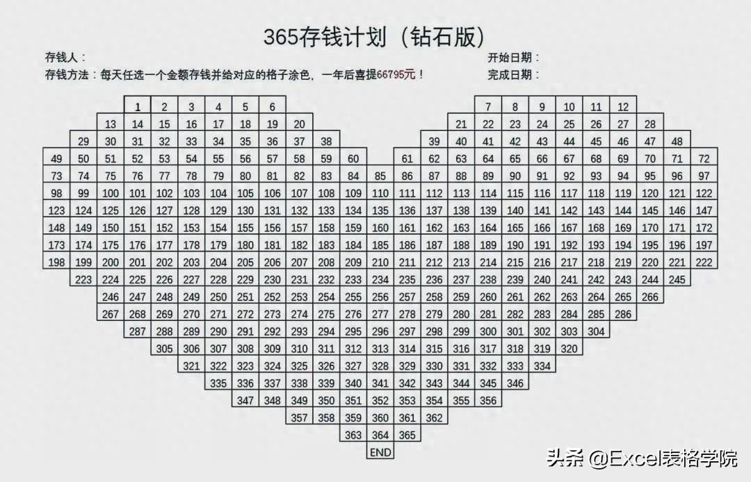 我用Excel制作的365存钱计划表(钻石版),让存钱变得更有趣