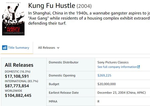 全球票房大卖1亿美元,北美票房破1710万,周星驰轰动好莱坞