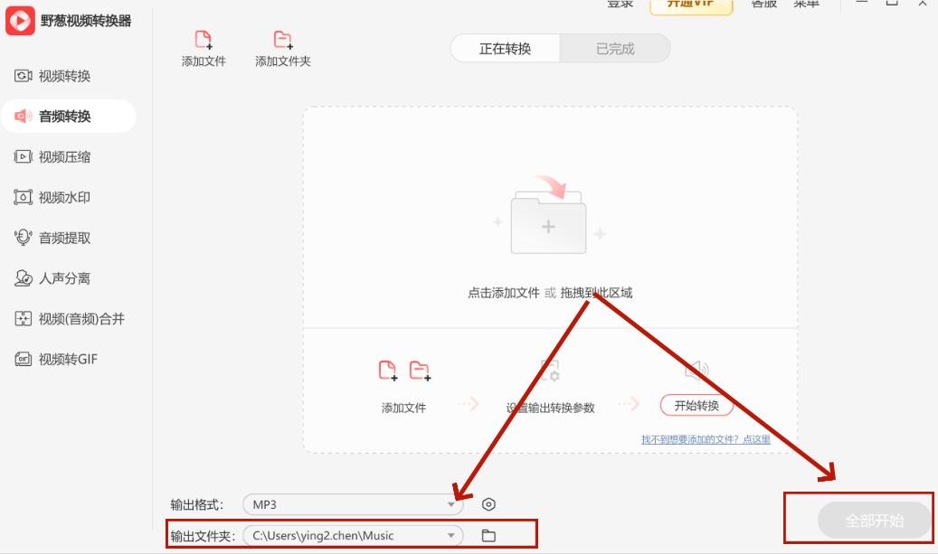 步骤3,选择“输出文件夹”的所在位置后,点击“全部开始”。