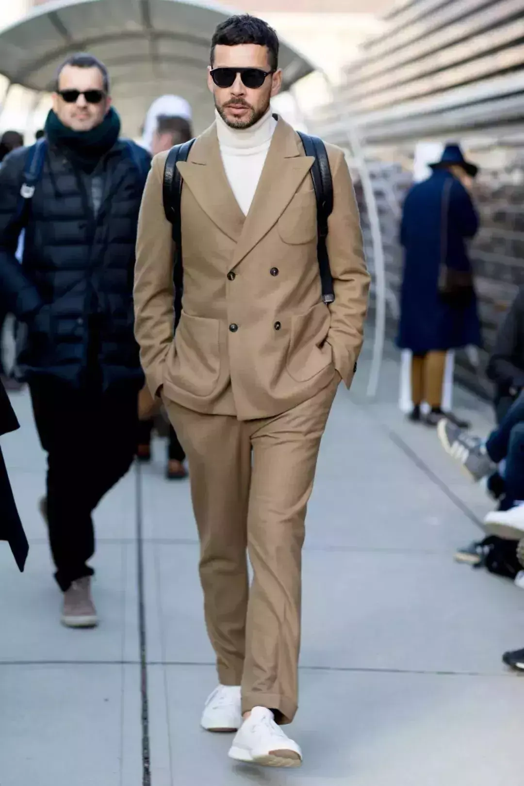 能够为秋冬带来暖意的大地色系也是男士们的首选。另一方面可以在廓形的选择上利用大廓形来修饰身形,而纯色的冷帽、礼帽和瓜皮帽也是凹造型的利器。