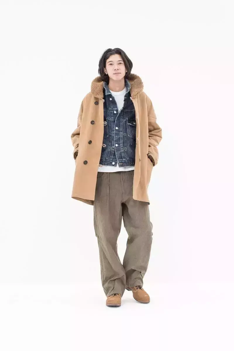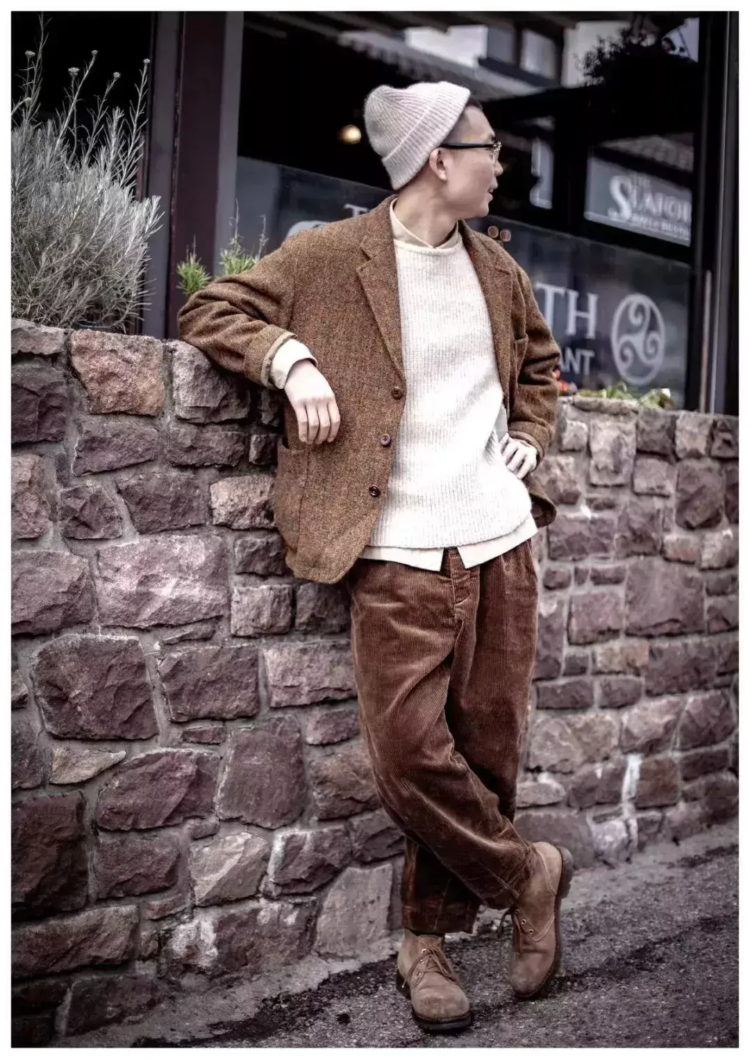 下身的话可以选择合身的牛仔裤或者one tone的休闲裤!造型重点可以考虑利用上下身以同色系或者大胆选用明亮的半饱和度色块对比单品营造层次,用灯芯绒裤提高复古感也可以。