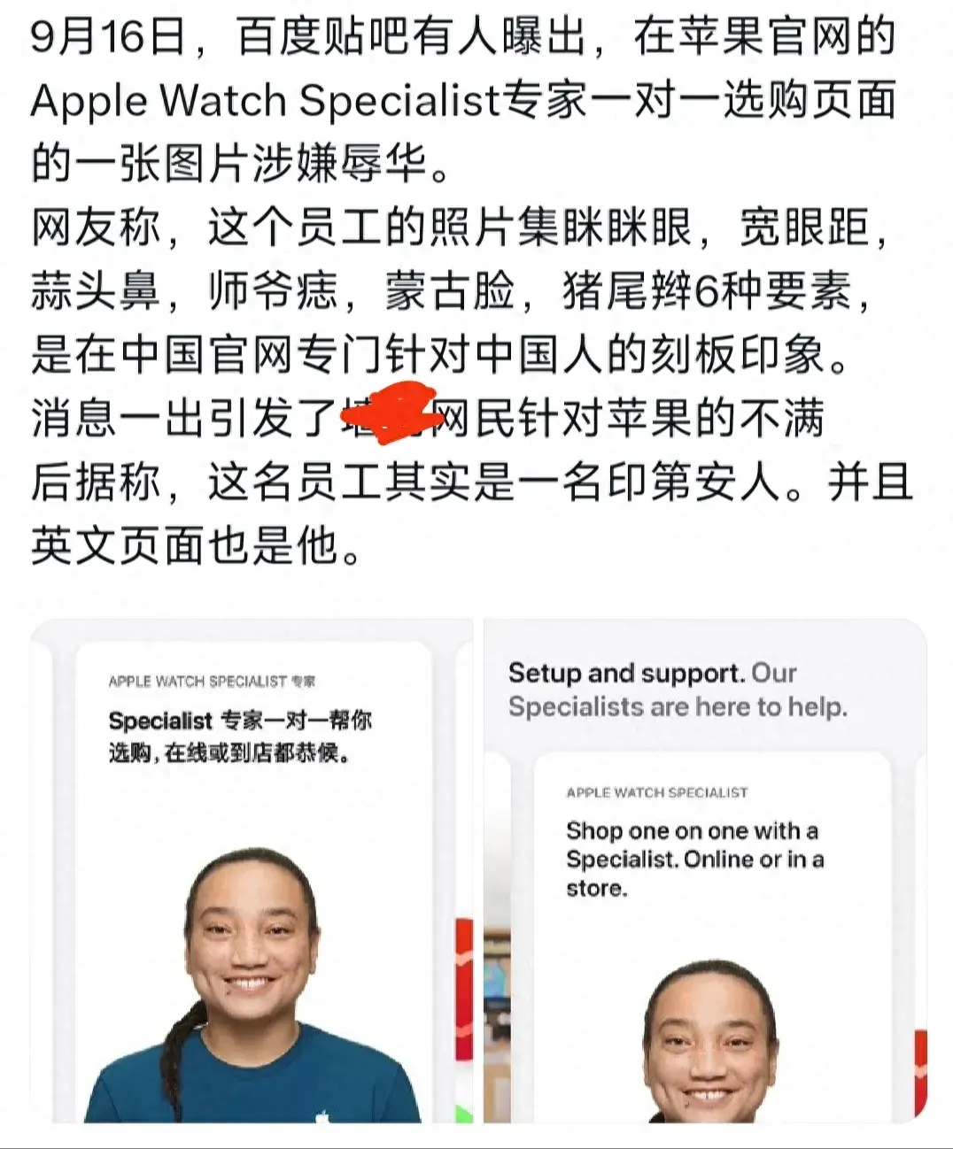 苹果公司的反应却引发了更多的疑虑。他们坚称,这位员工实际上是一名印第安人,并且类似的照片也在英文页面上出现。这种回应似乎挑战了中国消费者的敏感神经,引发了更多的不满情绪。