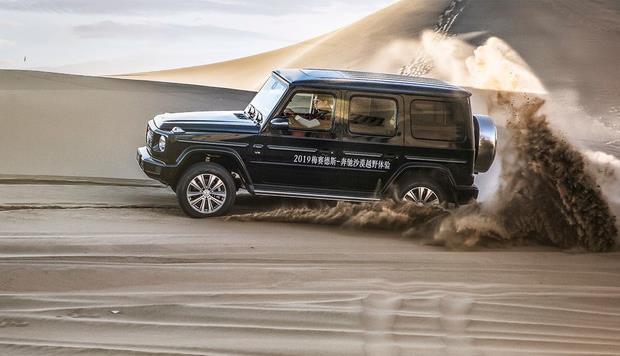 全新一代G级在重量减轻的同时,车身抗扭刚性增加了55%,使其身手更为矫健;得益于较长的悬架行程,G级在多数情况下轮胎都能贴住地面。即便不上锁,出现轮胎空转的情况,电子限滑会迅速将打滑轮胎锁止,把动力传递到有附着力的车轮上,此时只需绶踩油门,就能轻松通过。无论G63还是G500性能都足够强悍,仅锁止中央差速锁就足以应付沙漠路况,低速四驱和另外两把锁根本用不上。