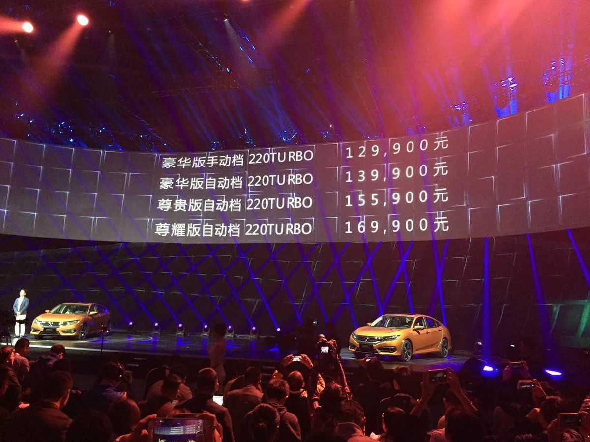 东风本田第十代思域于今晚在上海正式上市,此次上市的国产思域均搭载1.5T涡轮增压发动机,匹配6挡手动或CVT变速器,共有4款车型分别为豪华版手动挡220TURBO、豪华版自动挡220TURBO、尊贵版版自动挡220TURBO和尊耀版自动挡220TURBO。