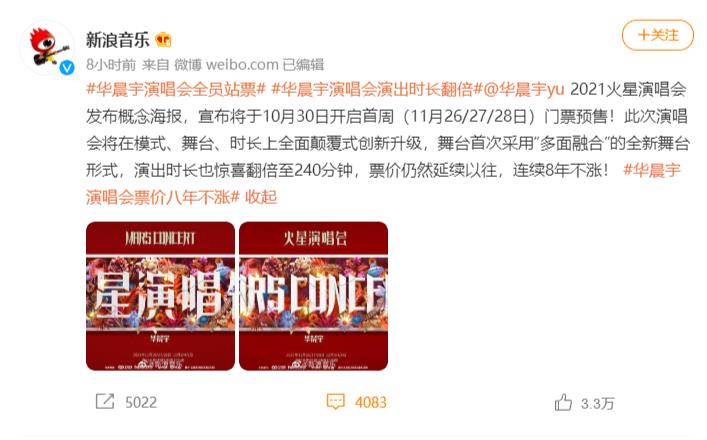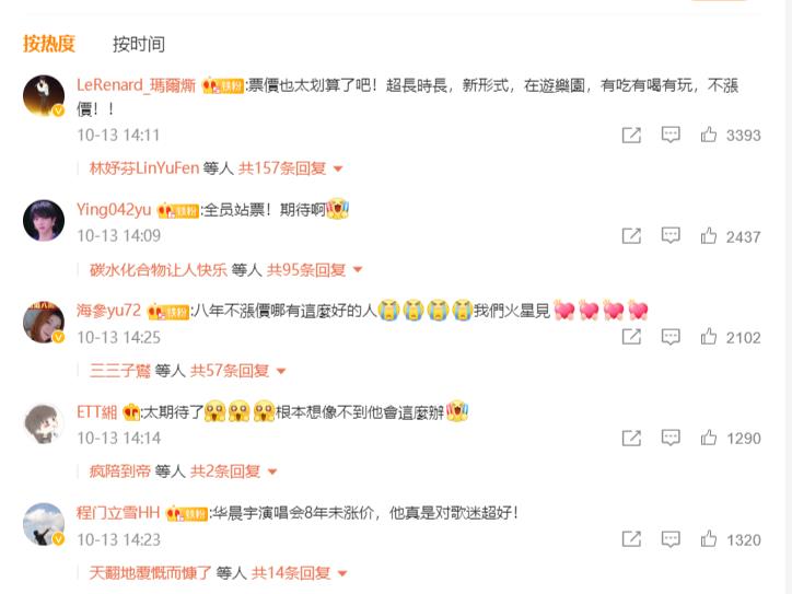网友们更是开心,华晨宇演唱会门票连续8年不涨价,几乎找不到这么好的歌星了。