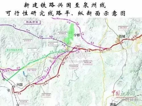 兴泉铁路定测工作全面完成,目前设计院正在编报可研修编报告,大部分路段的设计钻探已经完成,预计6月份可完成可研批复,10月份完成初设批复和施工图审查,10月份完成80%征迁任务,年底可全线开工建设。