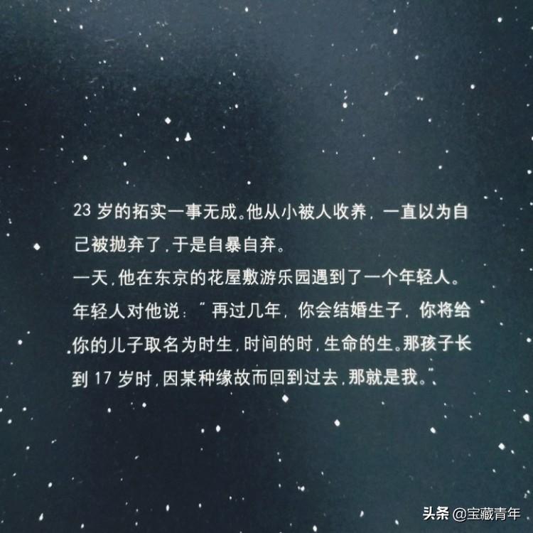 一直到时生临死的时候,拓实才和自己的妻子丽子提起,自己在青年时代就已经遇到过时生了。
