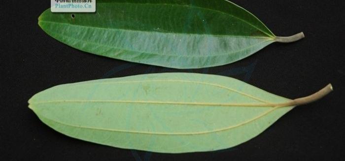 二是单叶互生或近对生,叶片长圆形或披针形,长8-34公分,革质,边缘软,内卷,表面绿色,光亮无毛,背面浅绿色,有稀疏黄色短绒毛,离基三出脉,叶脉在上面凹下,在下面凸起;